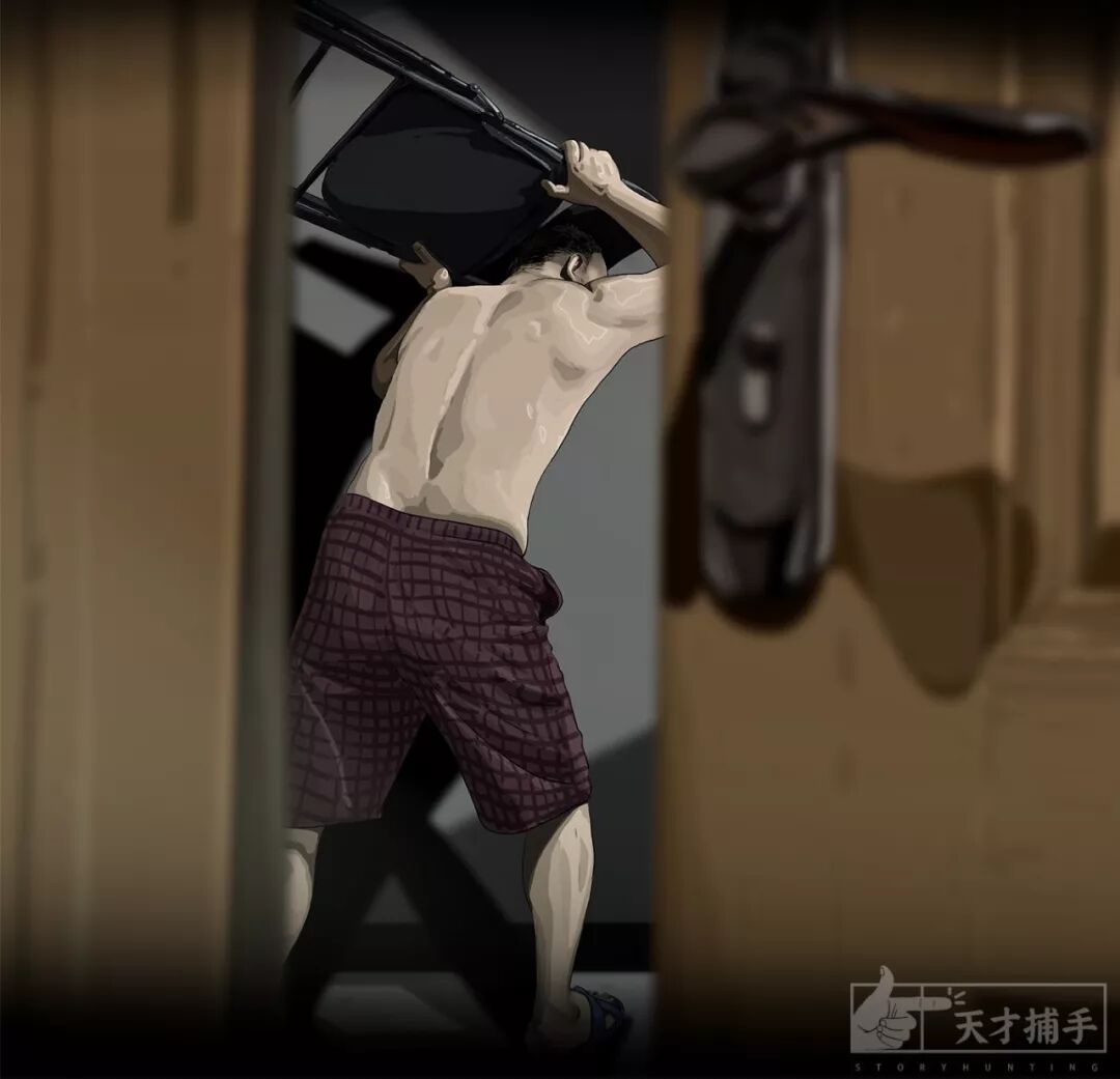 此时耀耀被争执声吵醒,她走到卧室门口,推开一点门缝,从缝隙中看到爸爸正举起椅子往外婆身上砸,而外婆的手被妈妈紧紧地拉着,爸爸没有停手,一直在砸。