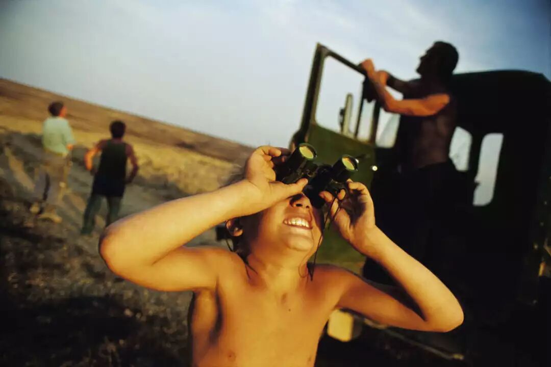 几个回收废旧金属的小贩观察着天空等待火箭坠落。图源:乔纳斯·本迪克森/玛格南图片社