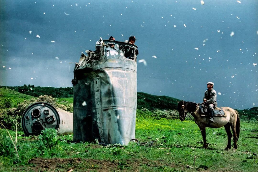 阿尔泰山区可能是地球上最偏远的地区之一,几乎没有什么路可以通到那儿,但当地的宁静时不时会遭到猛烈冲击。这是因为阿尔泰山区上空正是世界上历史最悠久、规模最大、最繁忙的太空船发射降落场——拜科努尔航天发射场(the Baikonur Cosmodrome)的主航道。每次发射后,火箭残骸如雨点般降落在这片荒凉的山区,当地人不得不靠坠落的残骸中谋生。