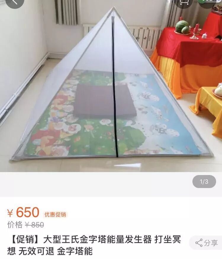 这款产品应该是奥根能量金字塔的番外篇,概念可能来源于帐篷,卖家甚至非常有心地装上了蚊帐。
