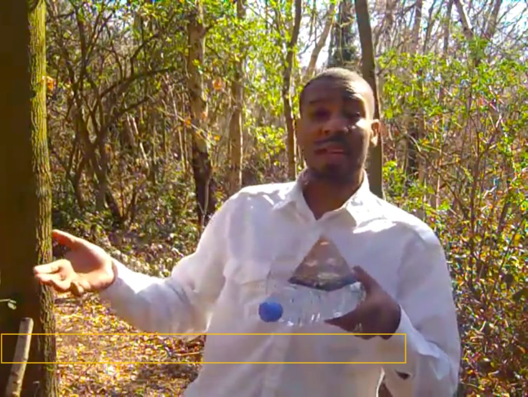 △ 这位叫詹姆斯的黑人小哥操着加勒比海地区口音的英语说:“把奥根能量金字塔放在水的边上,你会发现水变得更好喝了。”