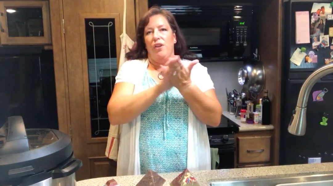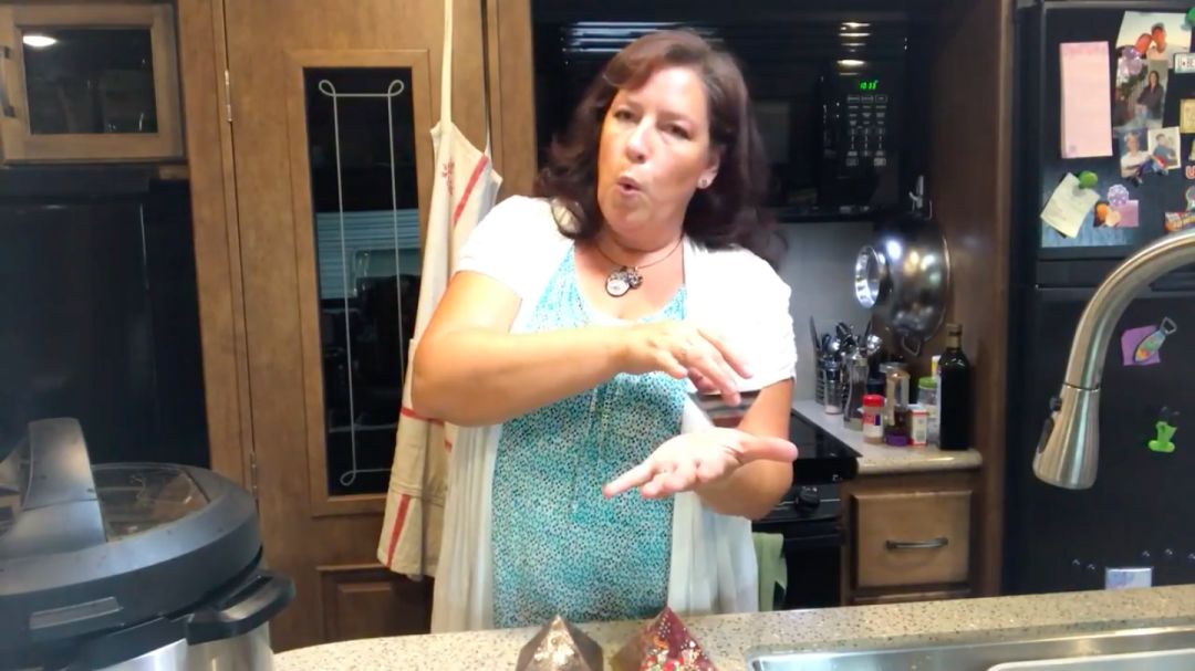 随后,她拿了一个没有塔尖的奥根能量金字塔,这次,她说:“哇,能量变强大了,感觉非常热。”并配上了欧美人特有的夸张表情。