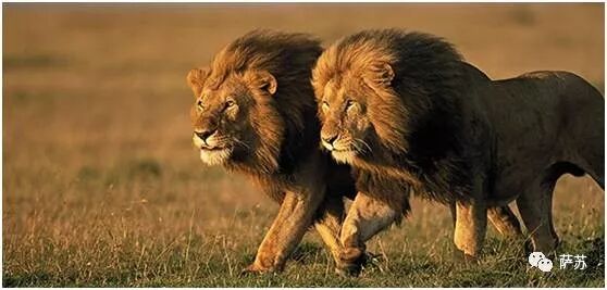 这也很正常,这就是当年一起生活的小狮子中的两头。小狮子们长大以后,虽然群体解散了,但是他们似乎懂得了如何利用集体的力量,所以他们通常是两个或三个弟兄一起占有一块领地,并共享所有的妻妾。而且,他们还把这种行为模式遗传给了后代。