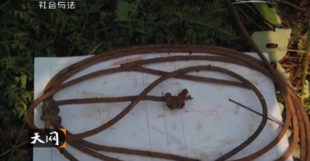 在尸检时,套在死者脖子上的绳索引起了侦查员的注意。他们发现这个绳子很普通,上面有很多使用痕迹,而且更为特殊的是这个绳子有好几个断端,侦查员把绳子的断端拼接后发现是三个扣。