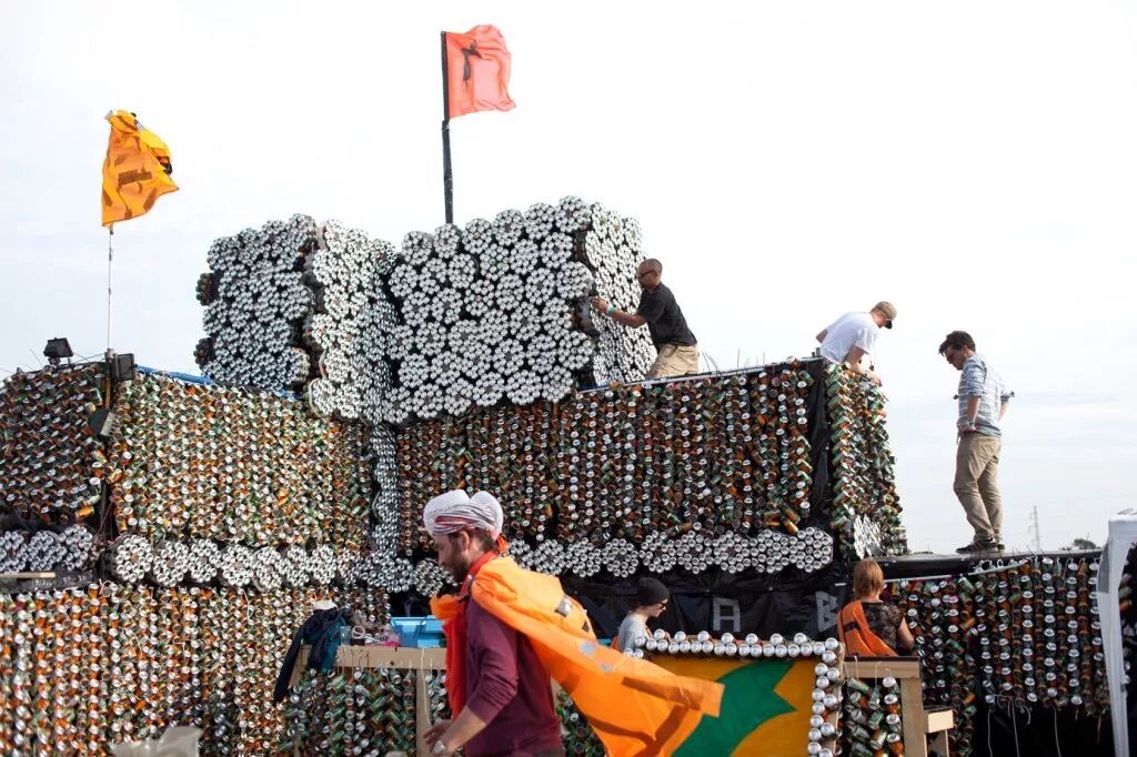 一群德国某大学的建筑系学生在音乐节露营区用啤酒瓶直接盖了个房子,用掉了10万个啤酒罐,也就是说他们花了十万块。