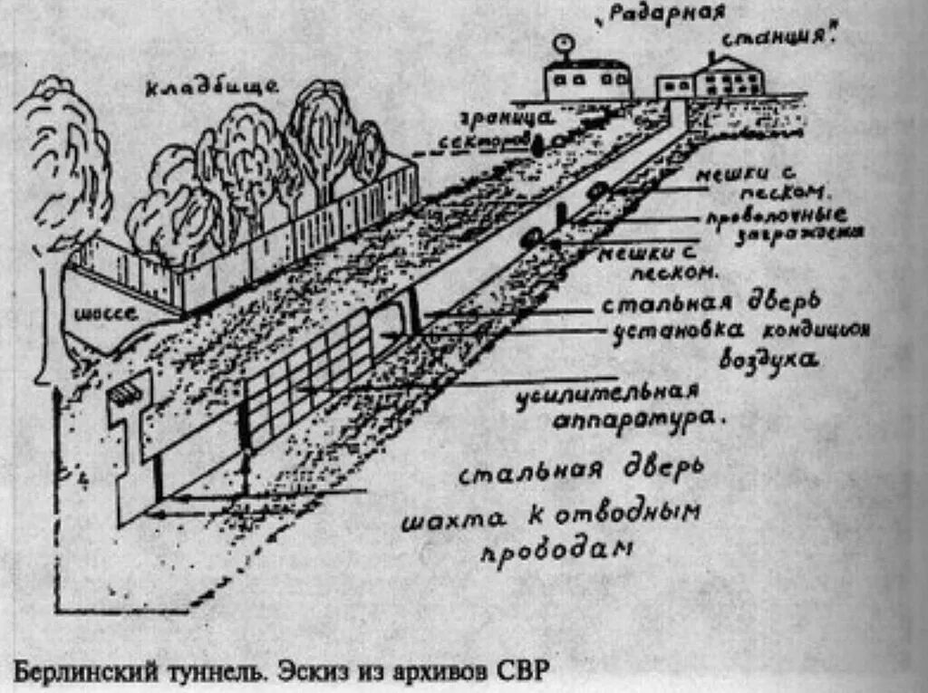 为了取得优势,两个国家不仅进行了军备及科技竞赛,还发明了独特的间谍手段。例如,1954年,美国中央情报局和英国情报处采取了“黄金行动”(Operation Gold)——在柏林地下挖了一条隧道,以窃听苏联驻德国措森(Zossen)大使馆的通讯电缆。