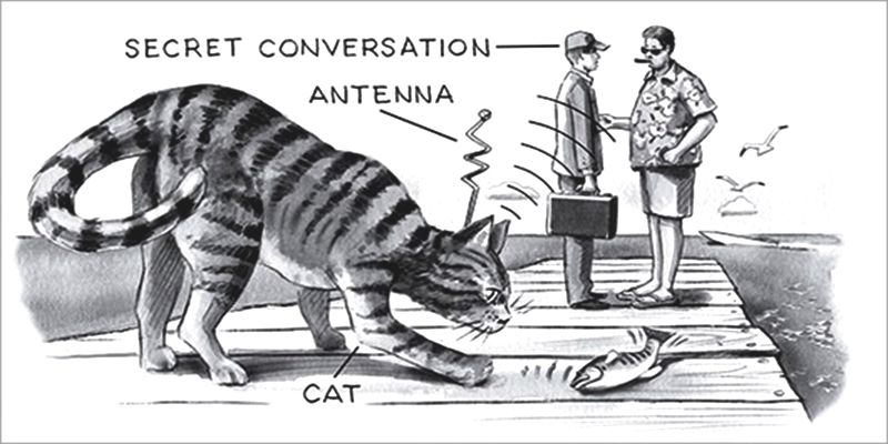 这个想法听起来非常妙。猫,很安静,小小的,几乎可以去任何地方,也不会引起怀疑。为什么不利用它们来监视苏联呢?人们只需将电源、麦克风、天线和发射器装到猫身上即可。