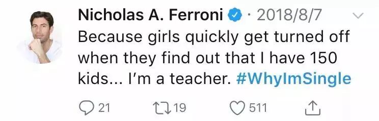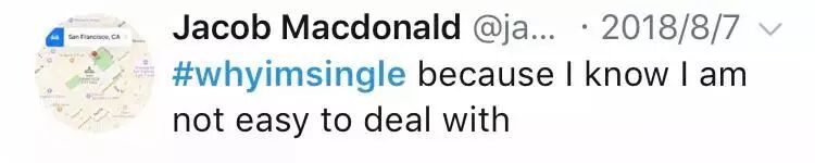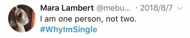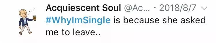 Twitter上最近掀起了一场“whyImsingle”的话题(老子为啥单身),对于自身痛点的挖掘,每个人都有各自“残暴”的属性,仔细翻了一遍后发现,这年头大家单身不仅凭本事,还凭自觉。