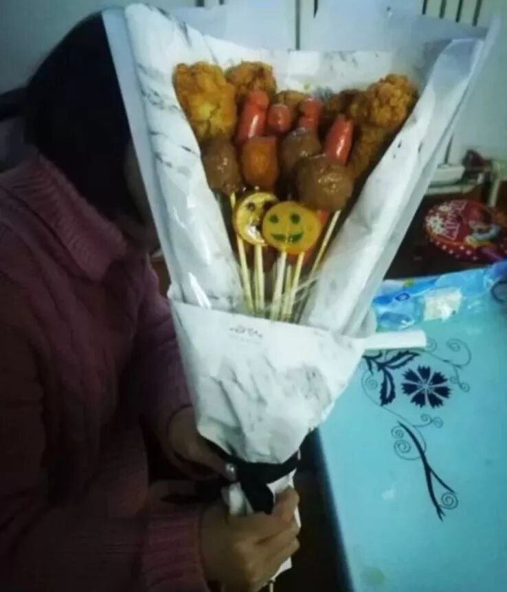 某男孩送给他女朋友的特色情人节烤串,五花八门的礼物让人甚至开始怀疑人生