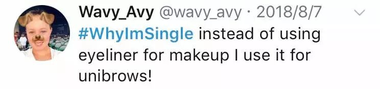 “我单身是因为,比起化妆让自己变美,我更喜欢用眼线笔画一字眉”
