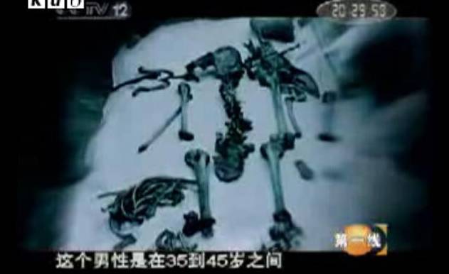 根据法医大大的鉴定,尸体已经完全白骨化了,牙齿和头发也没有了,死亡时间在9-10年之间。根据骨龄等判定,死者为35-45岁左右的男性,身高175-180cm左右。而真正让人触目惊心的是死者的死因。