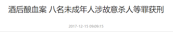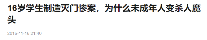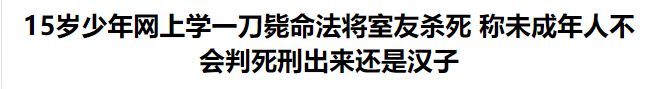 一名15岁的少年在网上学习“一刀毙命”将室友杀死,当少年被捕时,他并没有后悔,反而显得非常得意,他说“我不知道什么是年少轻狂,我只知道胜者为王,我活着他死了,我就胜利了。”