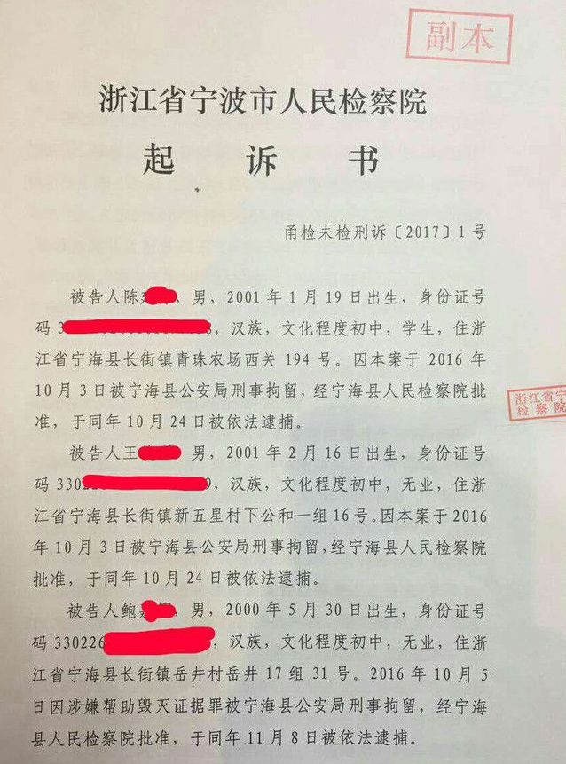 凶手陈xx,2001年1月19日出生,学生,家住浙江省宁海县长街,判处无期徒刑,剥夺政治权利终身;