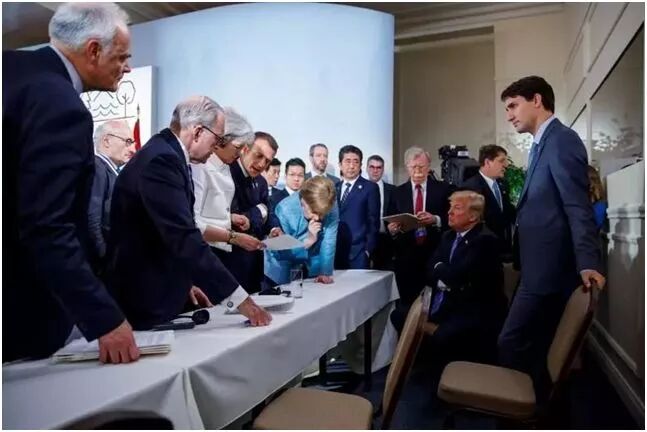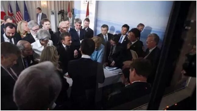 这张图片是不是感觉特朗普(专题)在这届峰会上几乎遭到了各国领导人的一致炮轰?