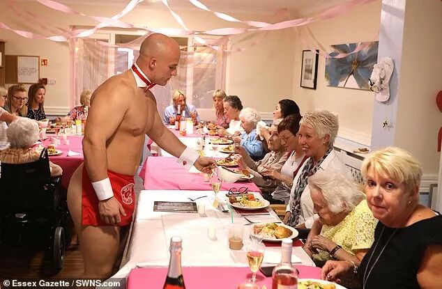 就在前几天,养老院的活动策划人Martin真的在网上找了一家公关公司请了两个猛男来为奶奶们服务。