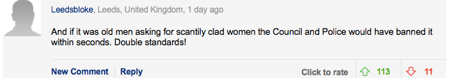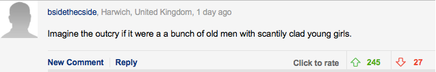 “如果是有老男人要求半裸的女人,警察和政府绝对会禁止。真是双重标准啊。”