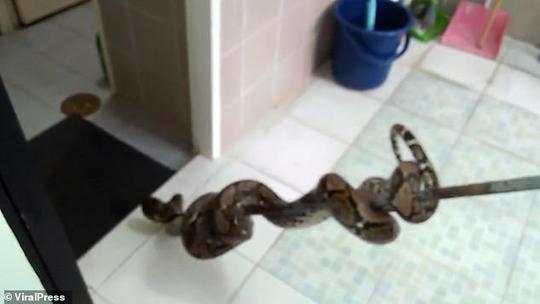 据报道,这条蟒蛇至少已经在马桶内躲了几个星期了。