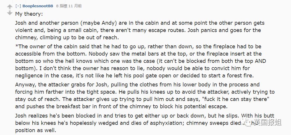 突然,一则出现在网上论坛的讨论,又让这桩都市怪谈火了起来,给了Josh的死除了“意外”之外的解释。