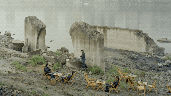 他拍摄的家与国、山与水,在视觉上色彩寡淡、构图平稳,似乎是云淡风轻;仔细去看,才发现画面内容的荒诞和尖锐。