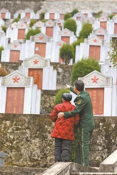 2014年12月19日,何良英站在儿子曾经战斗过的边陲,亲切慰问老山主峰的守边战士。蒋德红摄