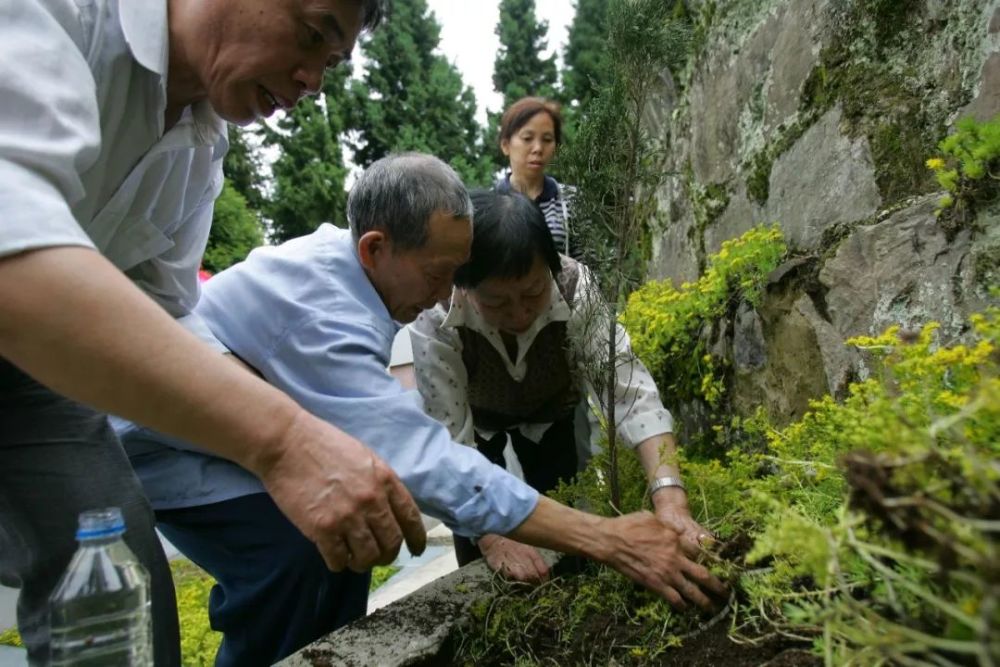 2009年5月7日, 何良英将老家带来的柏树栽在了儿子何田忠的坟头。徐元宾摄