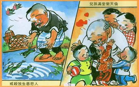 儿孙满堂乐天伦,戒杀放生慈悲人