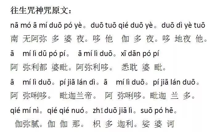 往生咒原名拔一切业障根本得生净土神咒,换言之,只要念这个咒语就能拔除亡者的一切深重业障,得生极乐净土。