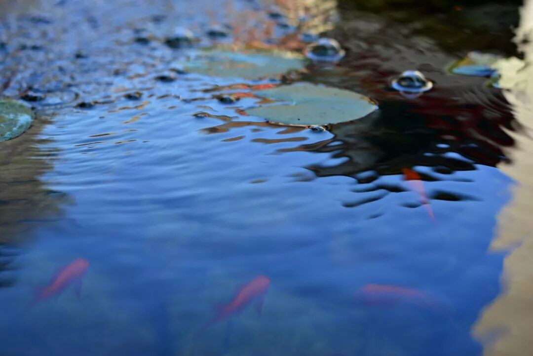 李伯伯家屋子里的厨房没有像外婆家那样,改到院子里。因此院子除了厕所外,地方相对空一点,就在院子里建了个金鱼池,池里养了很多红色,黑色,花色的金鱼,还有荷花和几片荷叶,岩石。