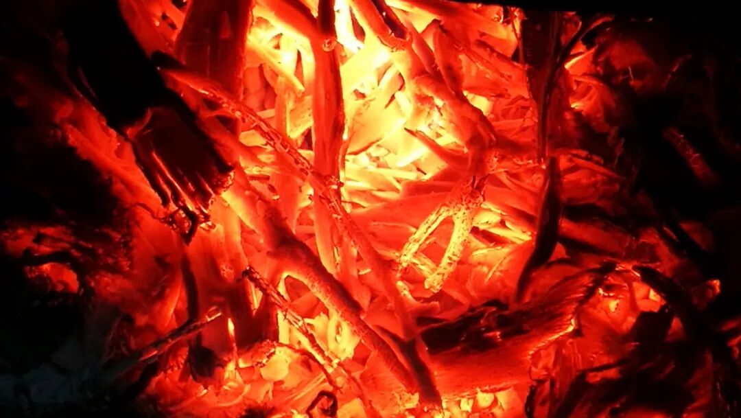 这又是一个很“自虐”的表演,施法者手舞足蹈,口中念念有词,忽然他的手指竟然燃烧起来,施法者随即含一口水,喷向已斩的妖尸和自己燃烧的手指,竟然燃起一束火。