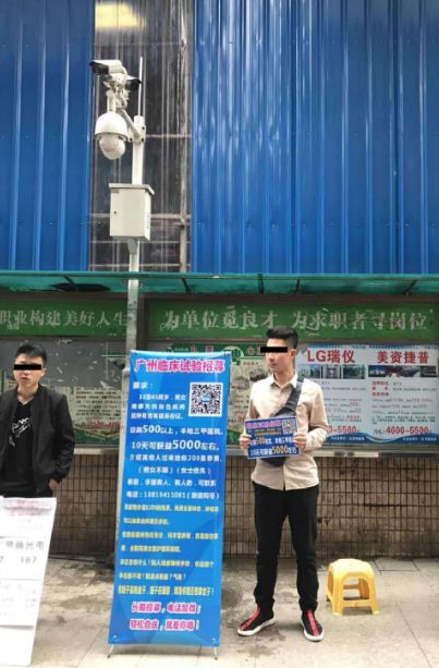 人才市场和大学城是他们的常驻地。在这些地方,日结工人和大学生密集扎堆,他们时间调度比较自由,又没有稳定的收入,是最有可能报名参加临床试验的群体。