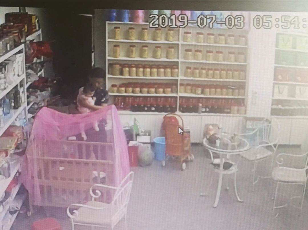图 | 门面的监控显示,7月3号早上,周安员离家前三个多小时,抱着七个月大的女儿
