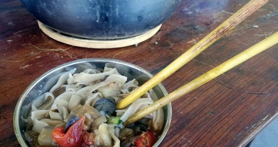 2016年盛夏,我第一次见王长松,玉米地里的旱稻没过了膝盖。午饭吃的面条,除了盐之外,茄子、西红柿、辣椒、小麦粉、杏醋和杏仁油等全部来自山里,使用的“一次性筷子”是用高粱杆做的。吃完饭,把筷子往柴火堆里一扔,它们就转化成了清洁能源。
