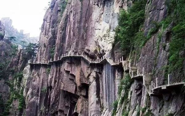 经过漫长的山谷,到了锁衣峰脚下,才遇见了真正阻碍我的难题:登峰的石梯太陡峭了,而且两边没有任何防护,稍不留神就会跌进悬崖里。我眼神示意文小玉,爬不上去了。
