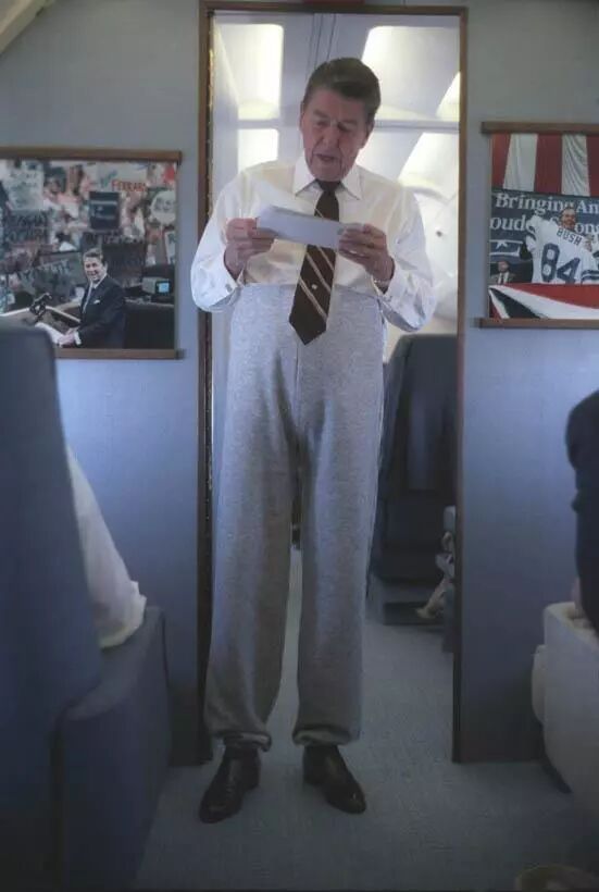 不能忽视的是,中年人的肚子在不断增长,所以腰带的位置要不断往上提,最终穿成“抹胸裤”。
