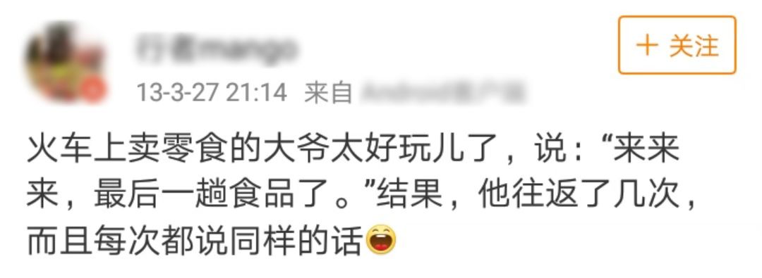 列车推销往往都在硬座车厢,推销员来来回回走搞得很多乘客都有些不耐烦,所以推销员们会反复提到:“这是最后一趟啊,我走了就不回头了啊,心动的赶紧买了啊!”
