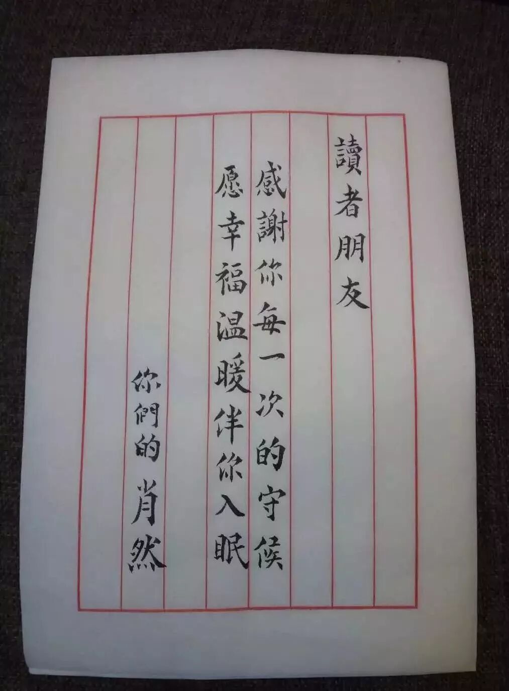 肖然很周到,也给大家手写了新年祝福,放在文末了,不是我说,也太老干部了,我爸都不那么说话。