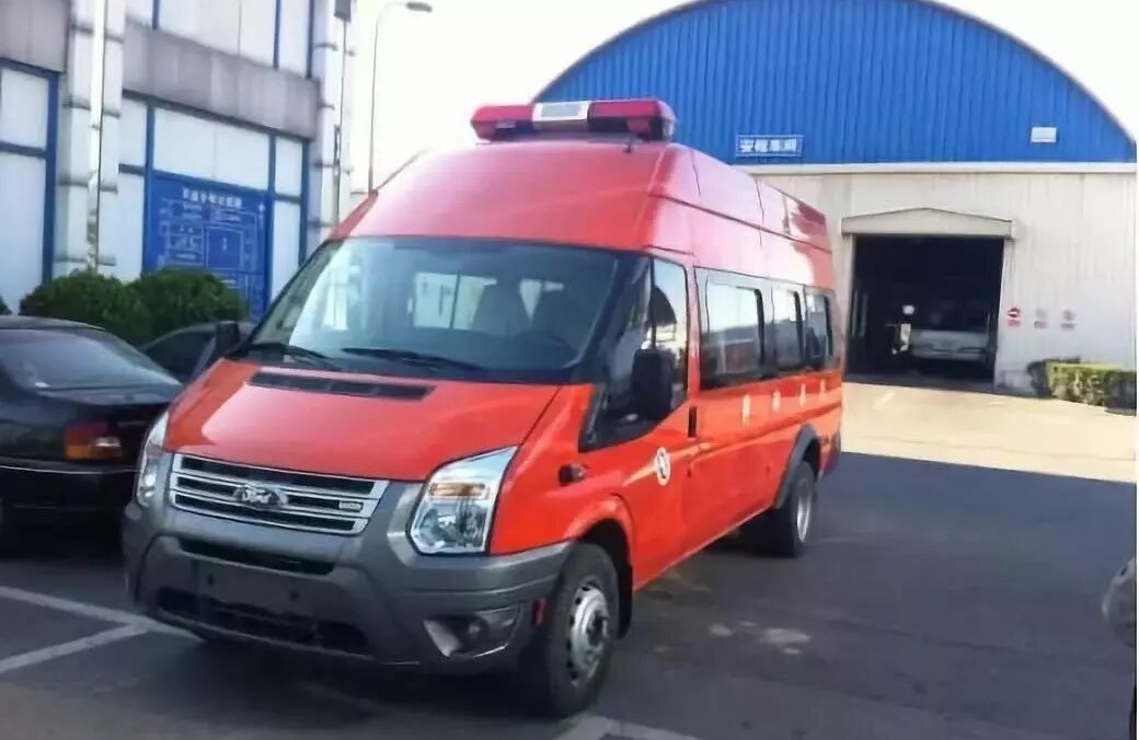 这是台运兵车,虽然没有救火设备,但是车子和消防车的颜色一样,上面还喷了“消防”两个大字,车顶也有警灯。