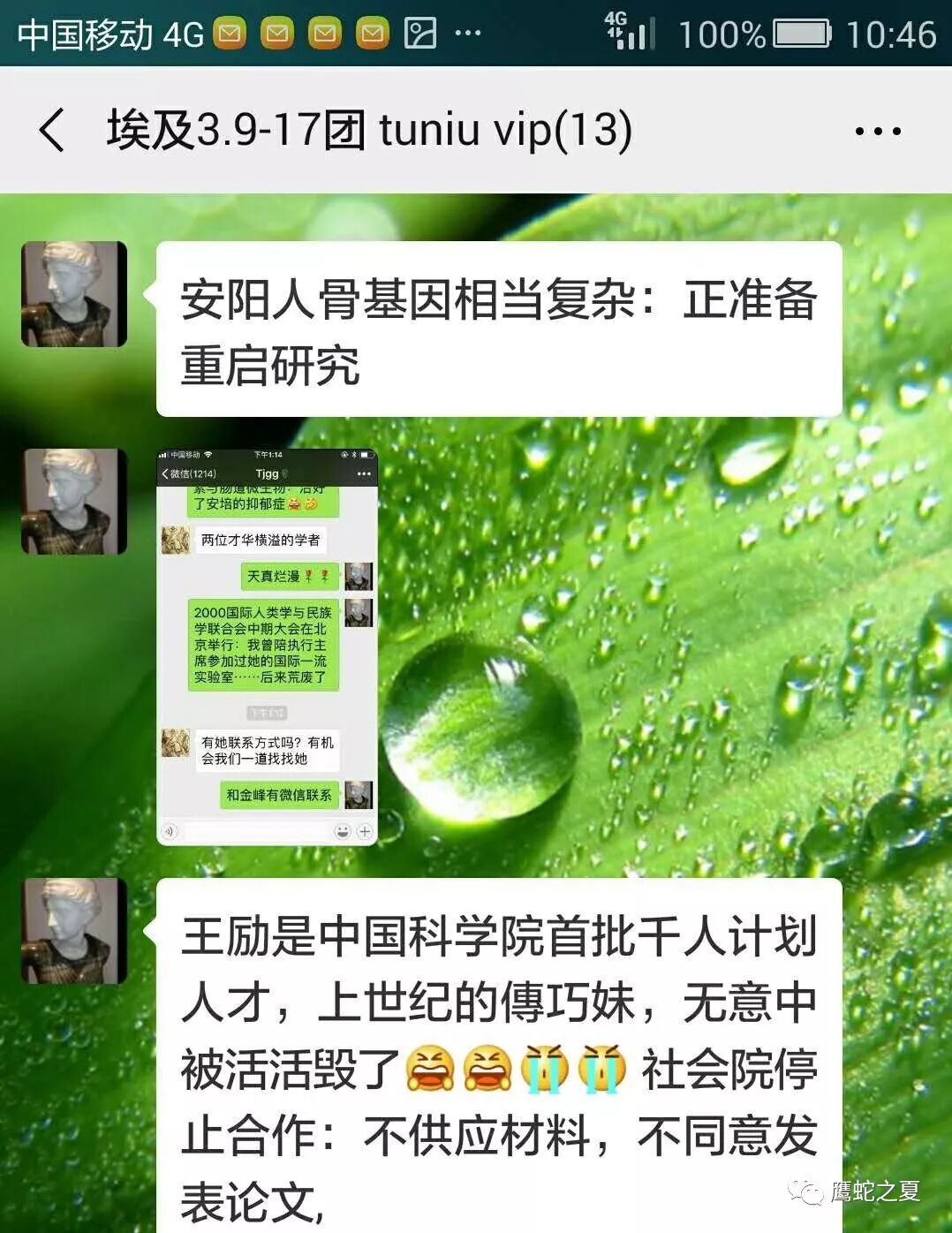 “具体的实验数据应该由W和J亲自公布,是否公布数据都应该他们说了算”。那为什么过去了20年,还没有得到公布呢?是W和J不愿意公布还是另有其他原因?这个时候,中国社科院民族研究所的Y研究员介入了进来了,把当年这桩旧案的前因后果交代了清楚!在征得Y老师的意见之后,他同意笔者把其提供的材料写进本篇微信公号文章上。Y老师的一段话,这回把笔者也给震惊了!W叫王沥,J叫金峰。唐际根和Y两位老师评论她们二位是天真烂漫的才华横溢的学者!然而就因为殷墟古DNA测试这个事情,她们俩的命运竟然被改变了!