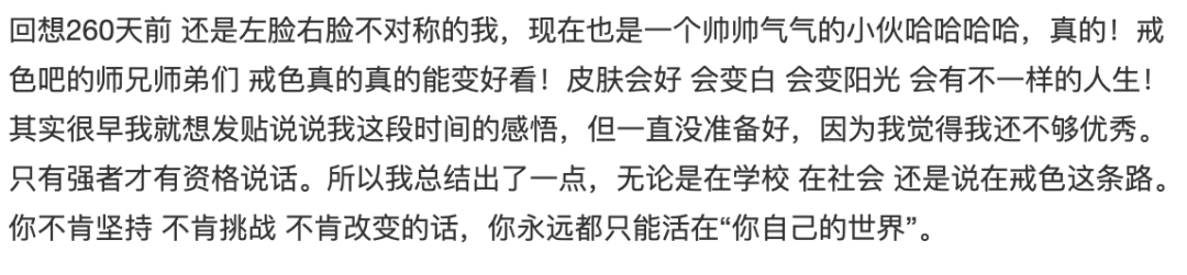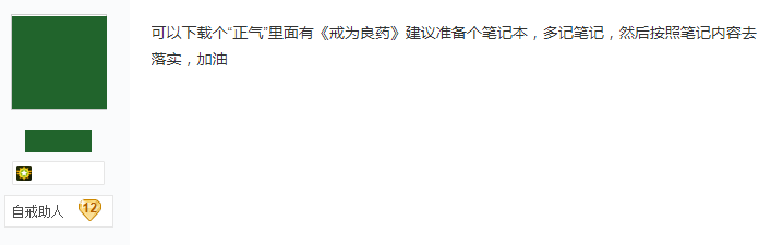 如果以上这些还是无法帮你抵挡百爪挠心的欲望,那么经验丰富的吧友们就会向你推荐被奉为“圣经”的《戒为良药》,在这本书的开篇,像诸多成功学书籍一样写着,“阅读这本书,可以改变你的人生!”