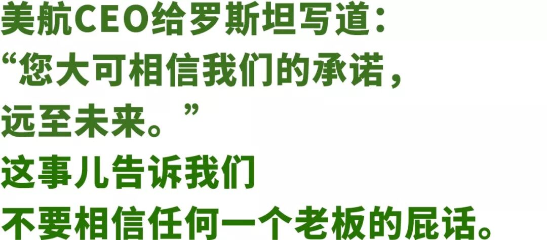 当美航意识到自己被薅资本主义羊毛了,他们匆匆取消了罗斯坦的终身免费会员,而且是趁罗斯坦登机的时候告诉他的。