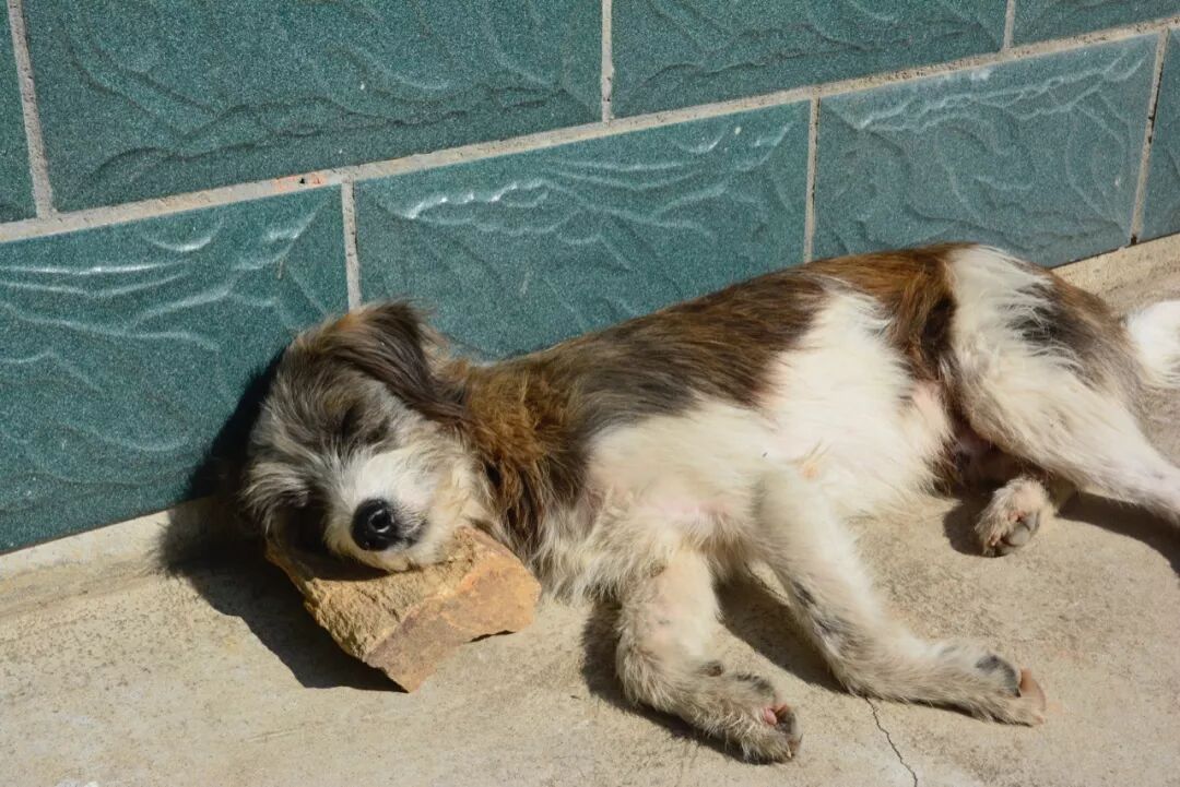 图 | 远子的狗,饭后熟练地走到屋前,睡觉,砖头是他的枕头