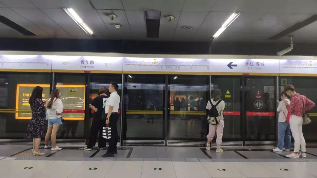 从青年路往东,6号线变得更加拥挤。有人曾在挤地铁时碰见一对小情侣,男生挤上去了,女朋友还在外面,眼睁睁地看着地铁门关上,急得快哭了。地铁门关上的瞬间,女孩扯住保安的衣袖,用抖动的声音说:“大哥,我俩一起的。”