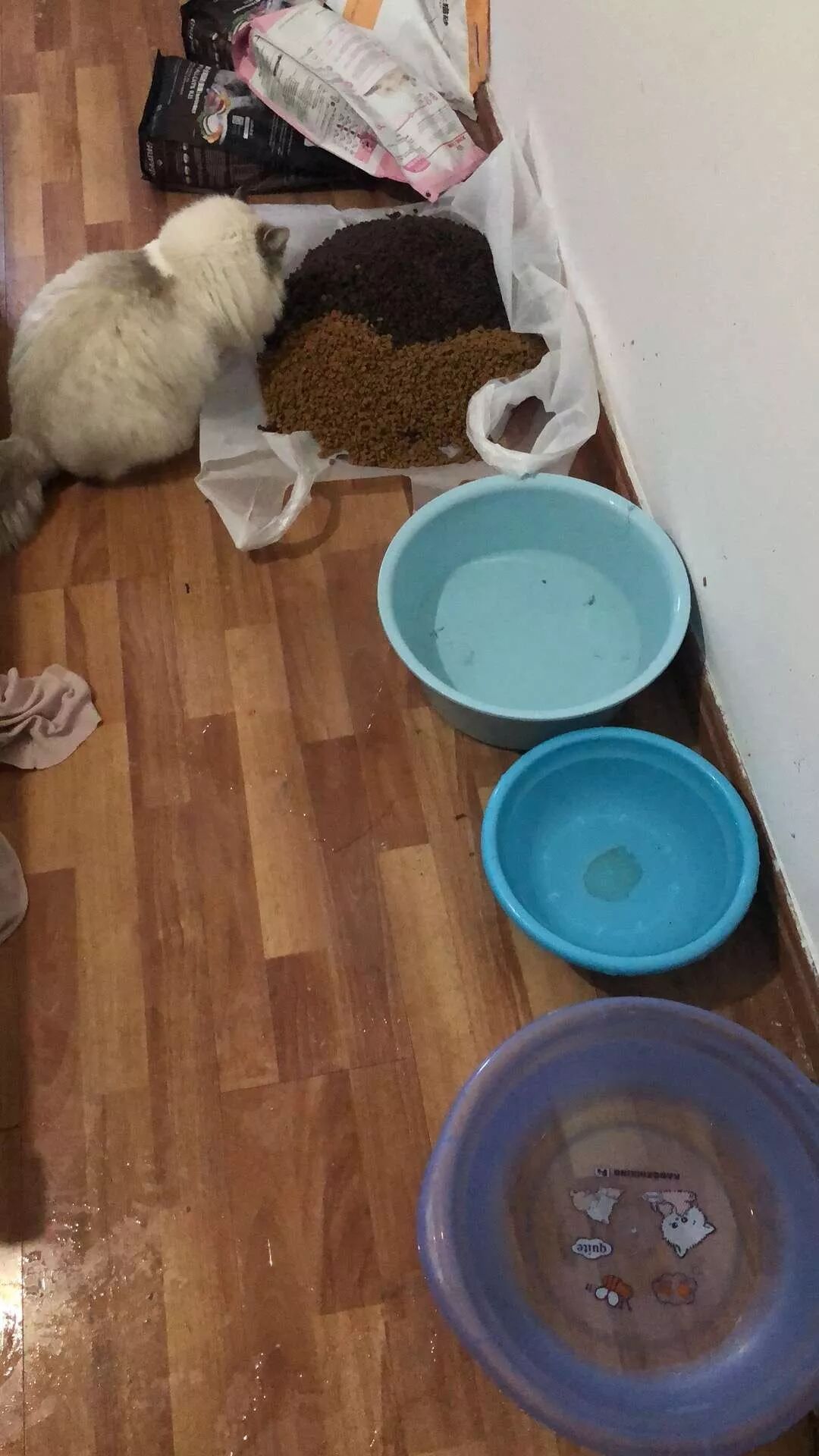 帮猫准备好充足的猫粮,用塑料盆给它们接满水,再给它们拍几则视频报平安,我就离开了。真希望这些被留在武汉城的小生命,都能平安地度过难关。