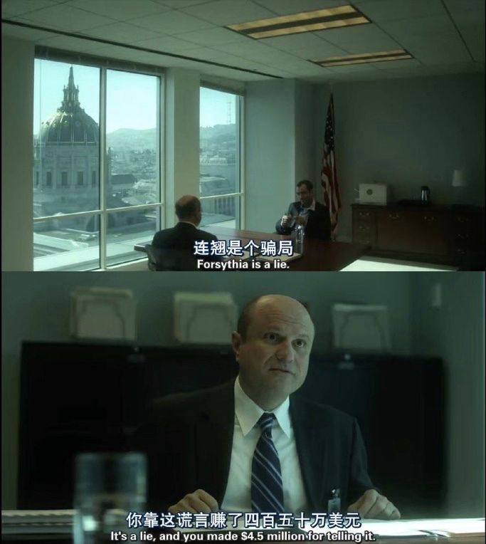 截图中,说“连翘是解药”的男性,在电影里的一位公知大V,名叫艾伦。