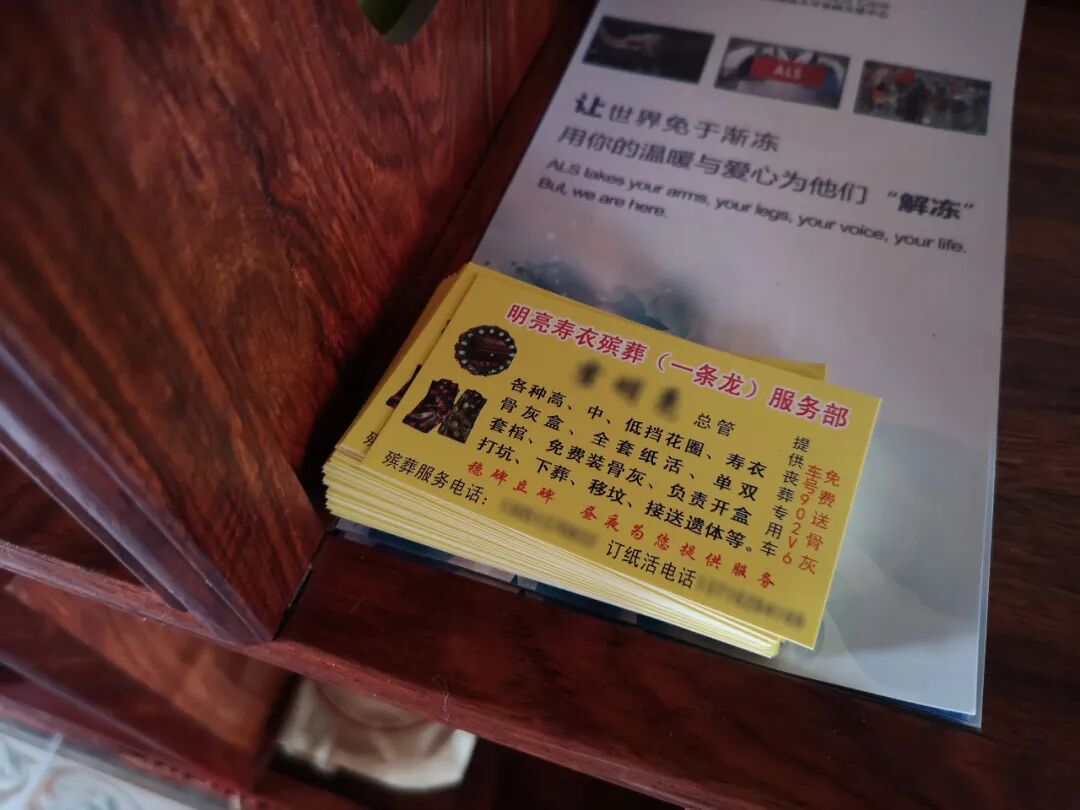 图 | 书架上的殡葬广告卡片