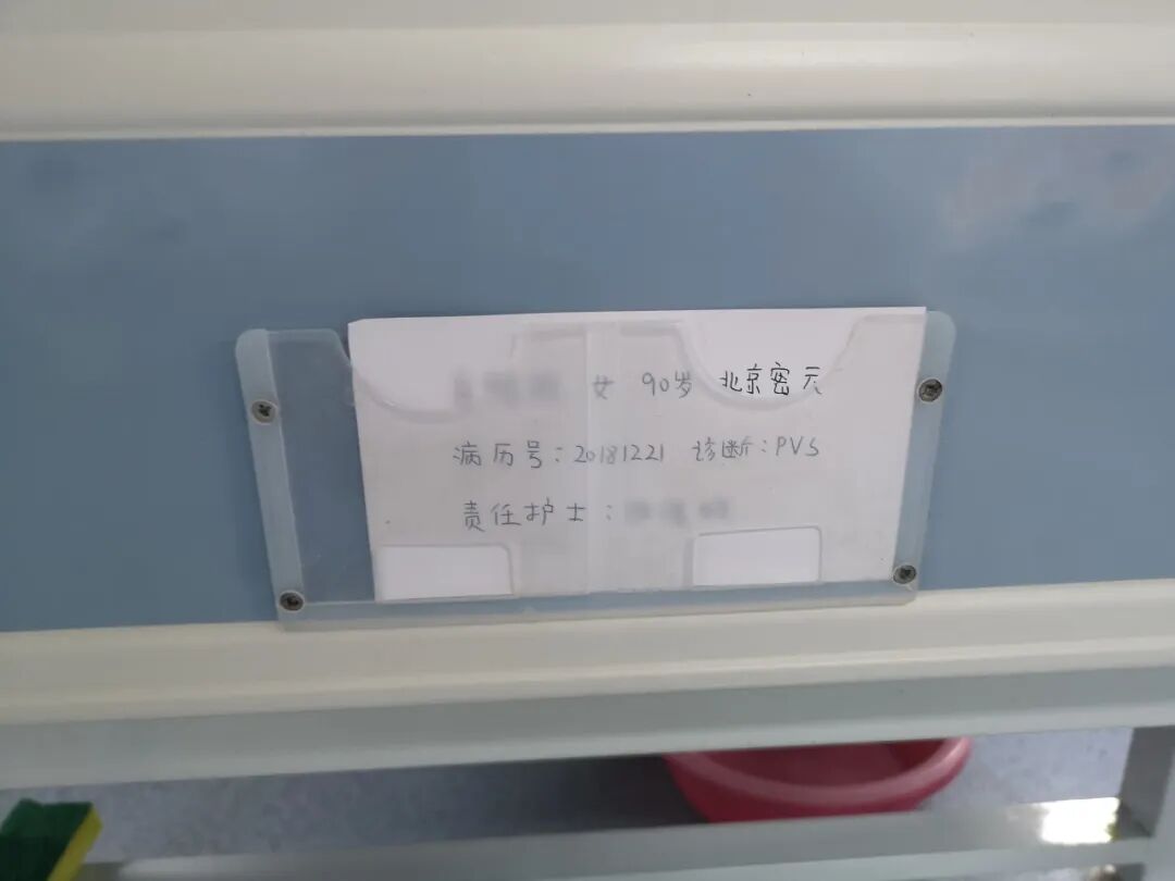 图 | 床尾卡片上,写着老太太和小冉的名字
