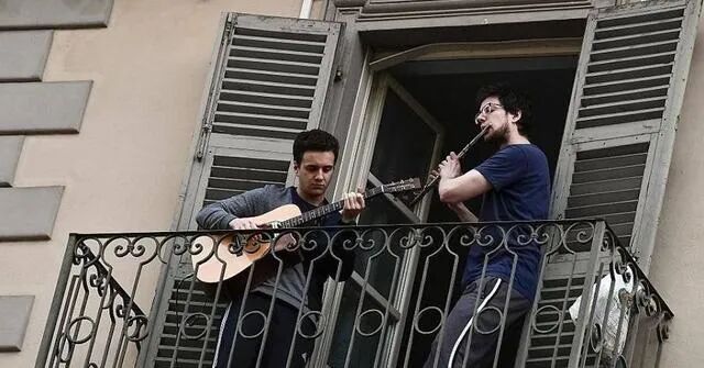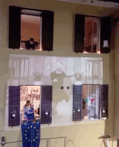 于是,我们看到,在封锁范围日益扩大的欧洲半岛上,一座座开放街区的私人阳台里,意大利、法国、奥地利、瑞士、西班牙等国家可爱的人们,放声歌唱、舞蹈,即兴演奏、用锅碗瓢盆打节拍。