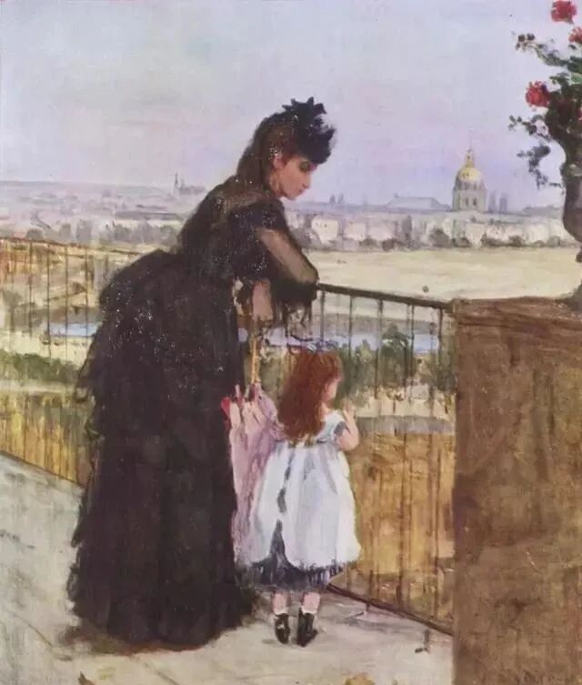 女画家Berthe Morisot 在1871-72年间绘制的阳台上的孩子和女人