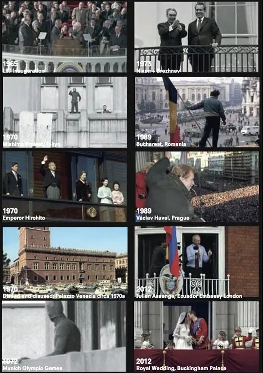 政治人物希特勒、列宁、英女王伊丽莎白二世、曼德拉、卡尔·李卜克等都在“公共阳台”上发表演讲。