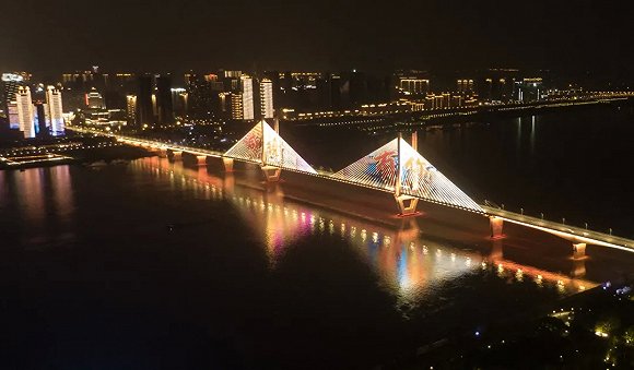 4月8日零时起,武汉市正式解除离汉离鄂通道管控措施,全市景观照明开启(无人机拍摄)。